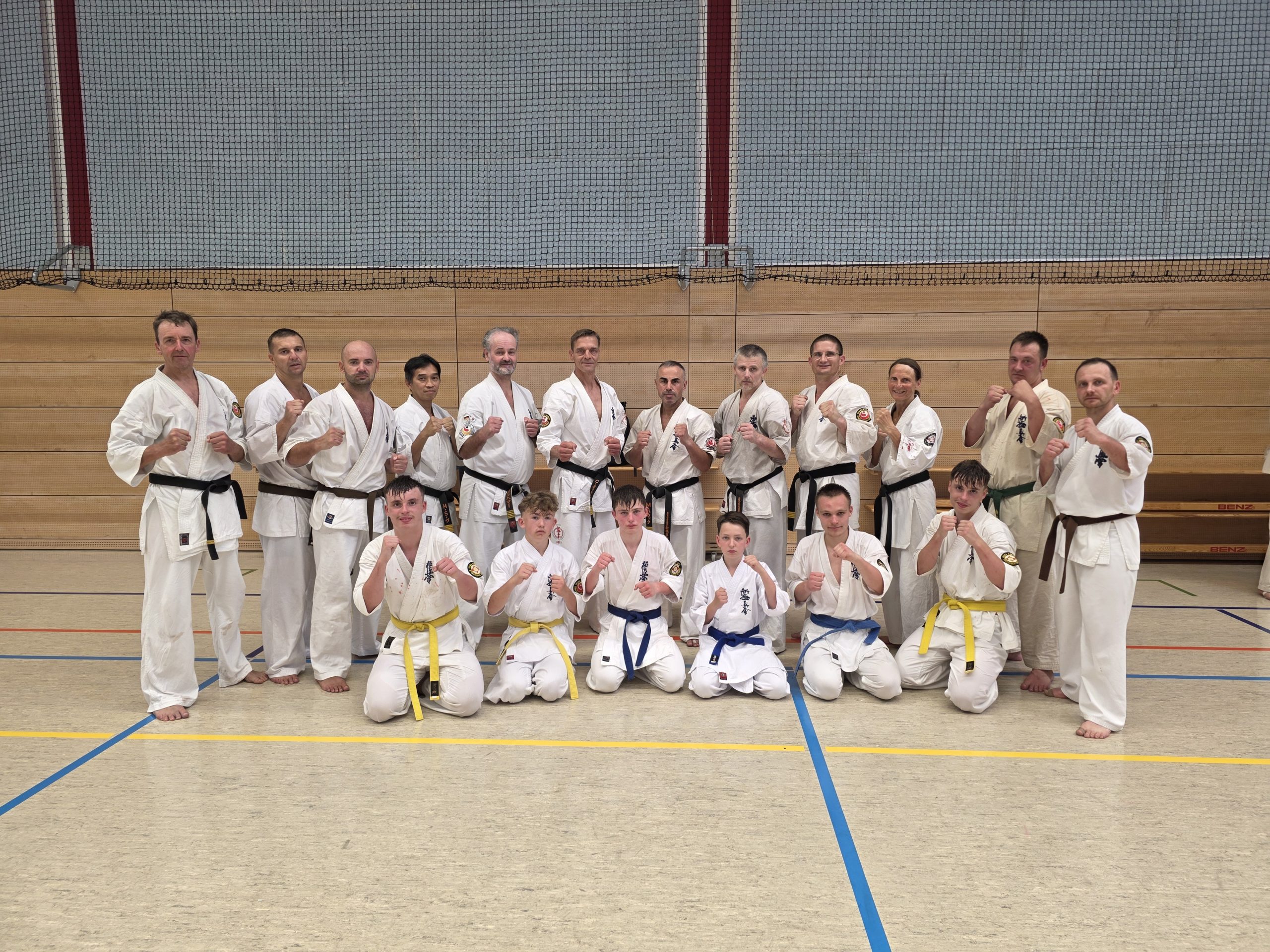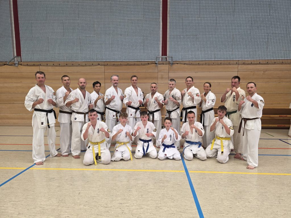 Die Jugendherberge in Warnemünde war auch dieses Jahr wieder fest in Karatehand. Rund 130 Karateka aus ganz Deutschland zogen von Samstag bis Mittwoch die Blicke am Ostseestrand auf sich. Trotz durchwachsenen Wetters wurden die meisten Trainingseinheiten an und in der Ostsee absolviert. Die ersten Tage lag der Fokus auf Kihon (Grundschultechniken) und Kata (Feste Abfolge von Techniken), zum Ende wurden dann die Kampfkombination und das Kumite (Freikampf) in den Fokus genommen. Am Sonntagabend, nach 3 Trainingseinheiten im Sand, stand noch für viele eine schweißtreibende Gürtelprüfung an. Nur hier im Sommerlager gibt es im Kyokushinkai die Möglichkeit, die Dan-Prüfung (Schwarzgurt) abzulegen. Die Neustädter Vadim Koop und Max Gus stellten sich den aufmerksamen Blicken der Prüfungskommission. Die monatelange Vorbereitung zahlte sich aus und sie schieden nicht wie einige krampfgeplagte Sportkameraden schon in diesem Teil aus. Am Montag folgte dann, neben dem normalen Training, eine Lehrprobe und ein Kampfrichterkurs, bevor es am Dienstag zum Höhepunkt kam: dem Kumite. Angeleitet von dem früheren Vize-Weltmeister Muzaffer Bazak erwärmten sich alle gemeinsam und wurden mit ca. 40 Minuten Sparring auf Betriebstemperatur gebracht. Danach wurden die Faustschützer ausgezogen und die Dan-Anwärter mussten sich in jeder Runde immer wieder einem frischen Gegner stellen. Ziel ist dabei nicht nur die kämpferische, sondern vor allem die mentale Eignung des Prüflings zu testen. Angefeuert von den Zuschauern kämpften sich Max und Vadim Runde für Runde der neuen Graduierung entgegen. Noch im ungewissen, wurde am Abend die gemeinsame Sayonara Party gefeiert, bevor am Mittwoch dann endlich die ersehnten Urkunden übergeben wurden. (Der eigene Gürtel muss erst noch in Japan bestickt werden). Die Trainer vom Oyama Karate Kai sind sehr stolz, dass mit Max und Vadim wieder zwei neue Sempai im Dojo gefeiert werden können. Jetzt haben die beiden die Aufgabe, Nick Wert entsprechend vorzubereiten, der in Warnemünde mit dem 1.Kyu den höchsten Schülergrad bestanden hat.